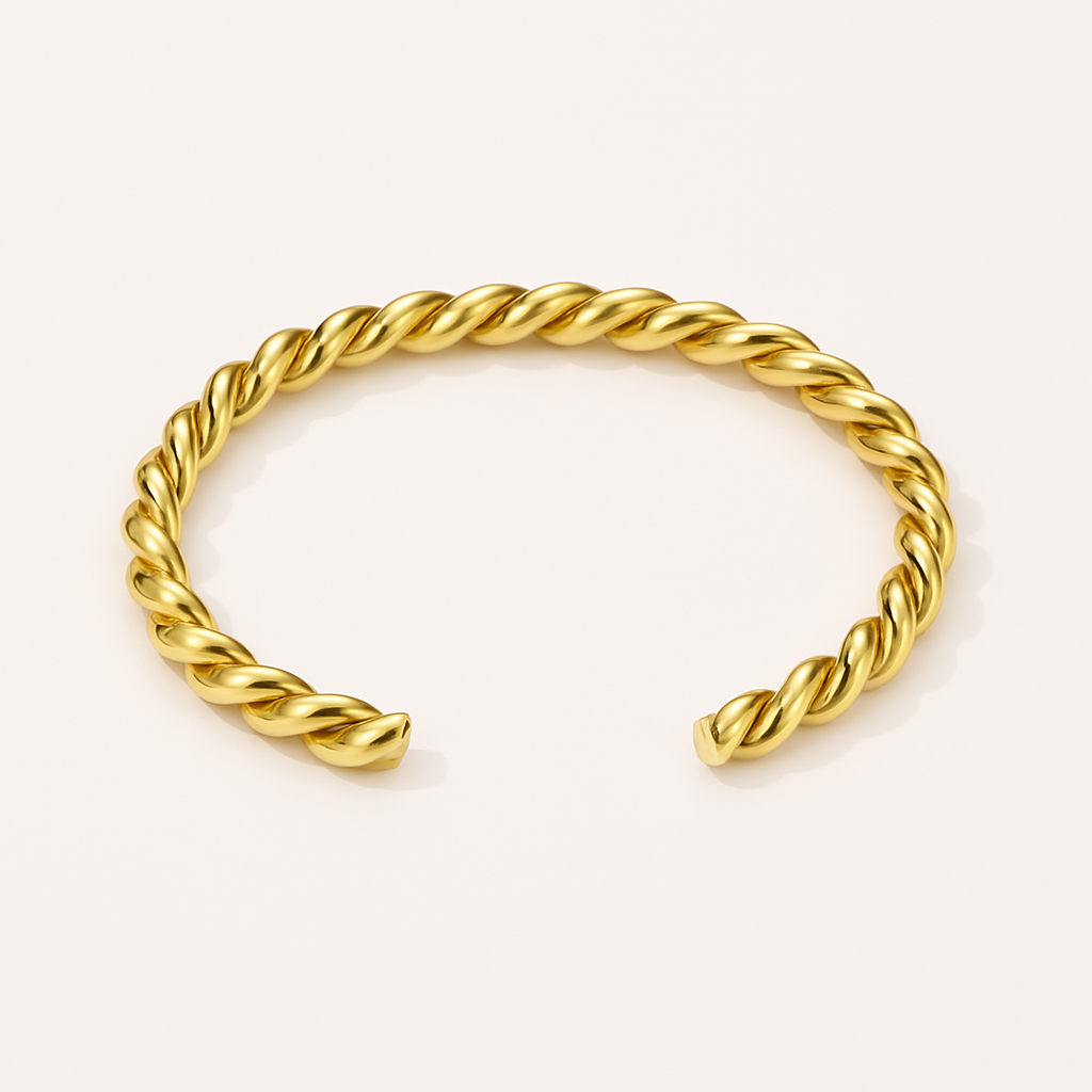 Enhance your style with our elegant Twisted Bangle. Crafted with a gold plated finish, this bangle offers a classic and timeless accessory to elevate any outfit. Its twisted design adds a unique touch, while the gold plating ensures durability for long-lasting wear. Perfect for any occasion, this bangle will be a staple in your jewelry collection.