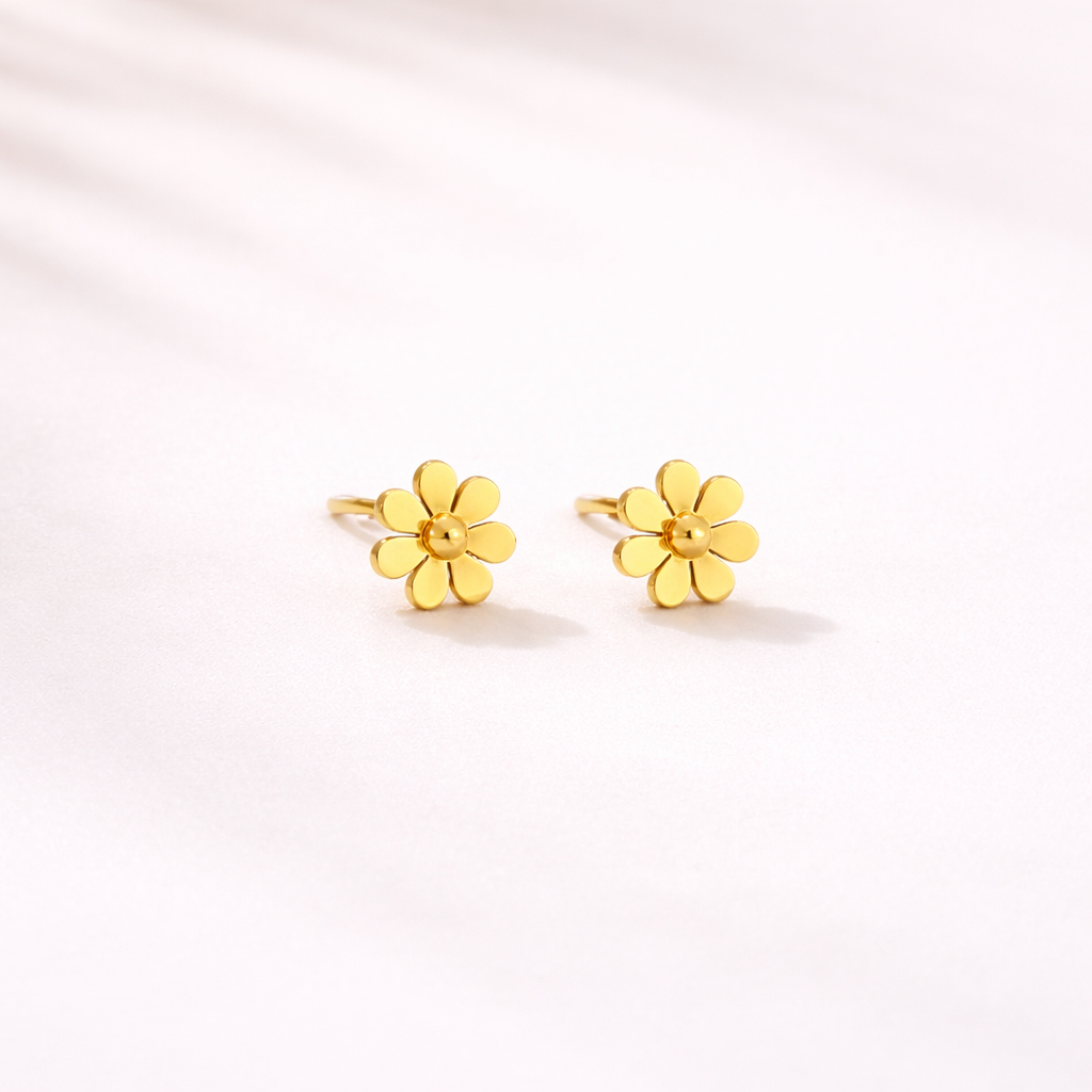 The Fiori D’Oro Earrings feature delicate golden flower silhouettes designed to bring a subtle glow to your everyday look. Minimal yet feminine, these studs add the perfect touch of charm whether worn alone or paired with the Fiori D’Oro Necklace.