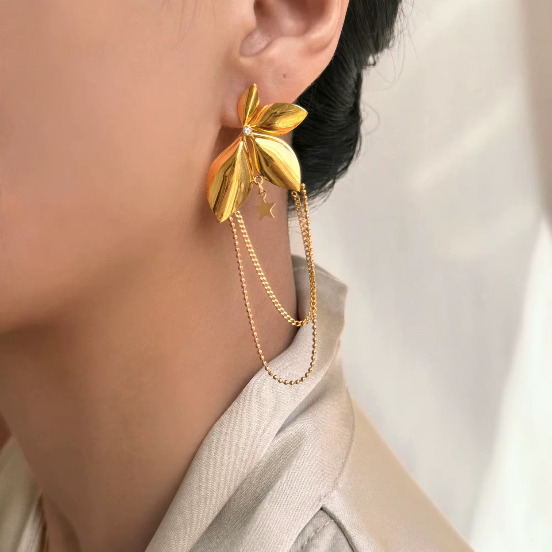 Lightweight yet expressive, these earrings elevate both everyday outfits and evening looks with a luxurious, feminine glow.
